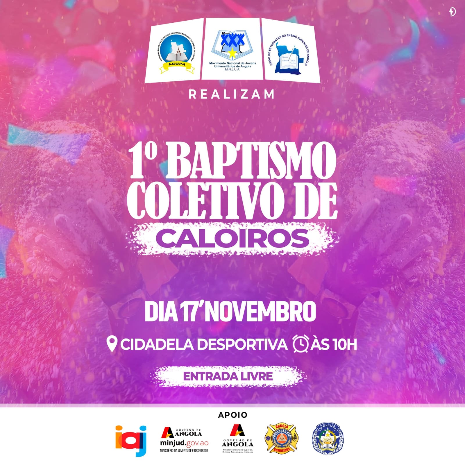 Convidamos os caloiros e veteranos das universidades públicas e privadas para o 1• Baptismo Coletivo dos Caloiros que realizar-se-á no dia 17 de Novembro, na Cidadela Desportiva, a partir das 10h.
