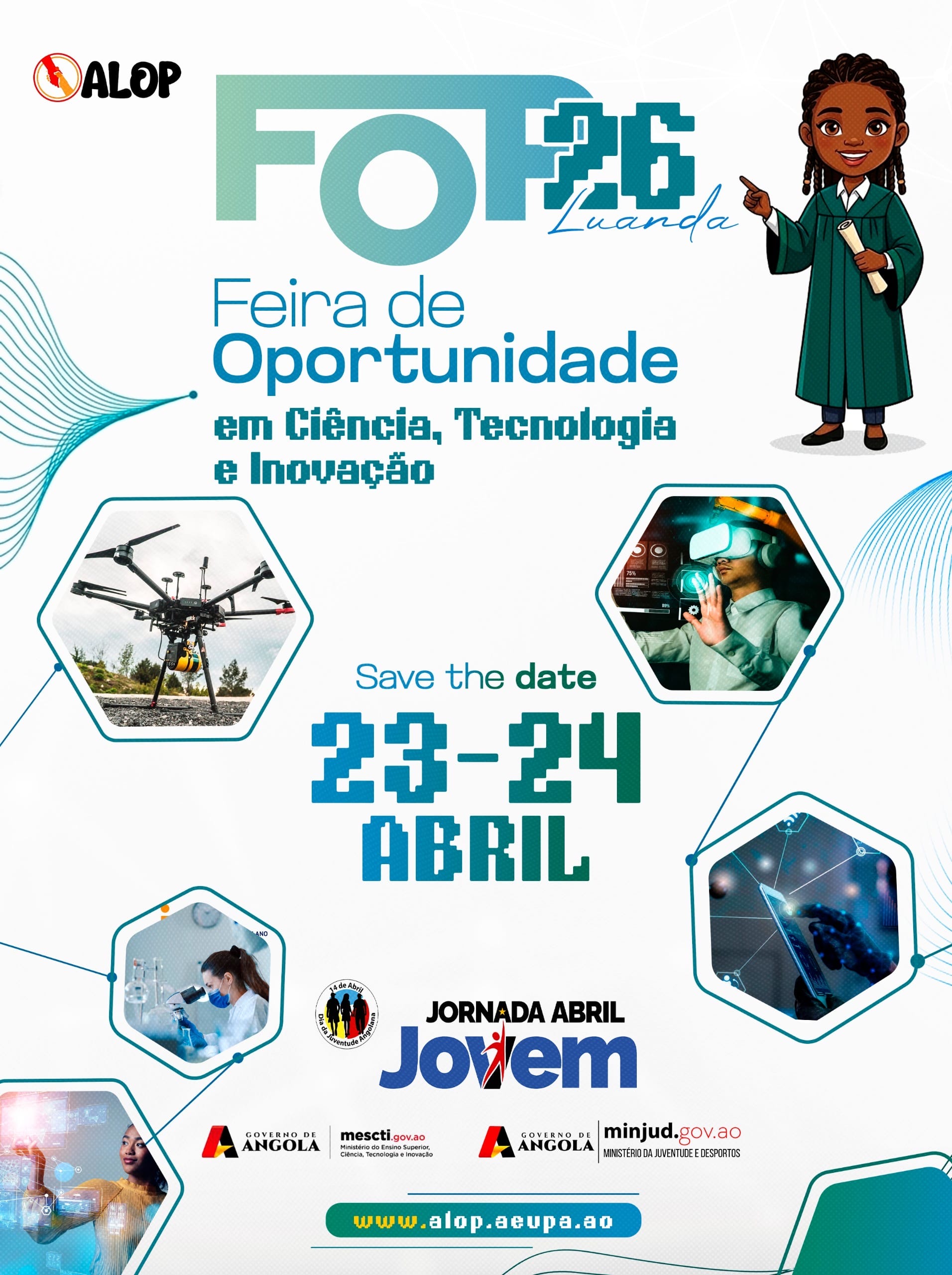 A Direcção da Associação dos Estudantes das Universidades Privadas de Angola( AEUPA) tem a honra de anunciar a comunidade académica, amigos, parceiros e potenciais patrocinadores que no âmbito das Jornadas Abril jovem, em parceria com o Ministério do Ensino Superior, Ciência ( MESCTI), Tecnologia e Inovação e o Ministério da Juventude e Desportos( MINJUD) a AEUPA estará a promover a FOP-26.