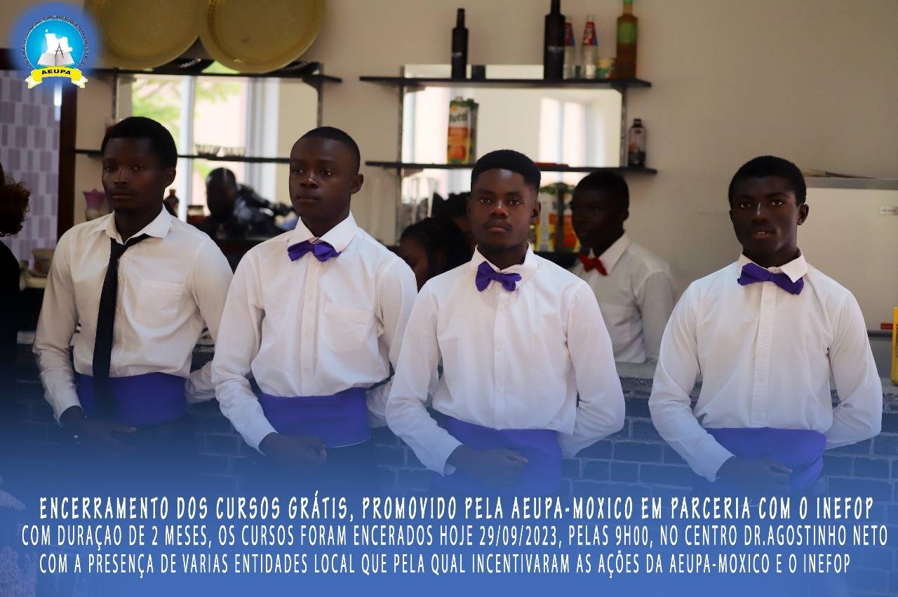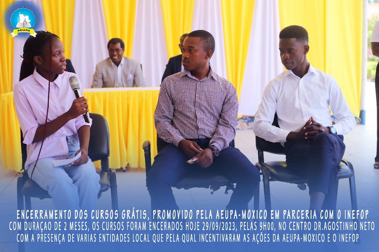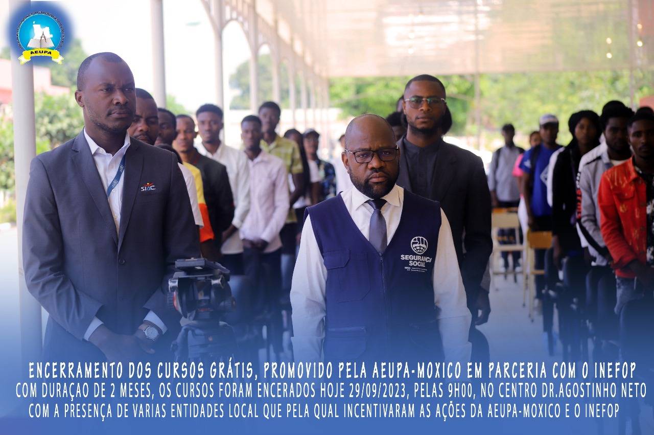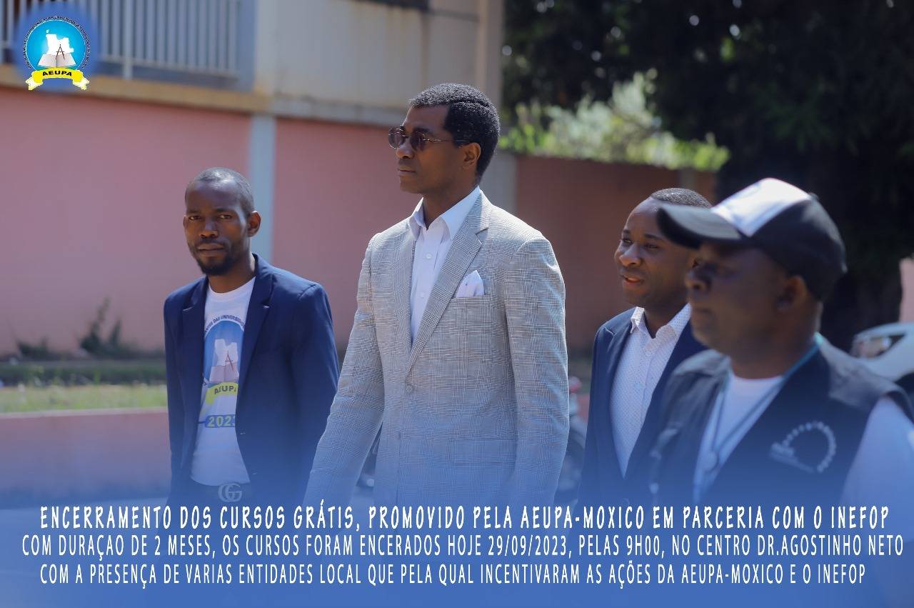 O excelentíssimo Director do INEFOP, Cahilo Guerra Mupila, acolheu assim os membros do Governo, representantes das instituições pública privadas, os formadores, formandos e os distintos convidados. E os mesmo cursos tiveram como duração 2 meses, como foco mostrar aos jovens como autosustentar-se se que possa depender muito de outrem. Aeupa-Moxico, tornar o Moxico uma praça acadêmica forte.