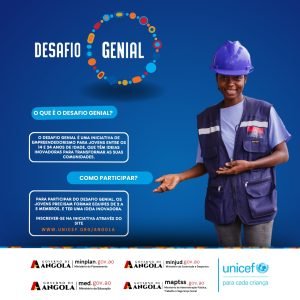 Desafio Genial é uma iniciativa de mentoria, que convida jovens que tenham ideias criativas inovadoras para problemas da sua comunidade se inscreverem. Essa é uma parceria do UNICEF com MINPLAN, MINJUD, MED E MAPTSS. Estamos a todo vapor com as inscrições para o Desafio Genial, que vão até 26/04. O nosso objetivo é conseguir chegar nas/nos jovens de todas as províncias, pois se trata de uma iniciativa nacional. Também haverá postos de inscrição presencial. Às pessoas interessadas em saber onde estão, peço que entrem em contato com Teresa Fedão, do UNICEF, 928 361 917 ou tfedao@unicef.org.